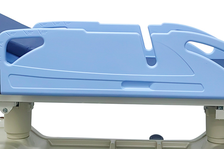 采用新型安全護(hù)欄設(shè)計(jì),當(dāng)護(hù)欄內(nèi)部受力時(shí)無法打開,可從外部向內(nèi)部按壓打開護(hù)欄,從而有效地防止了患者從內(nèi)部誤操作,導(dǎo)致墜床事故的發(fā)生,更加安全